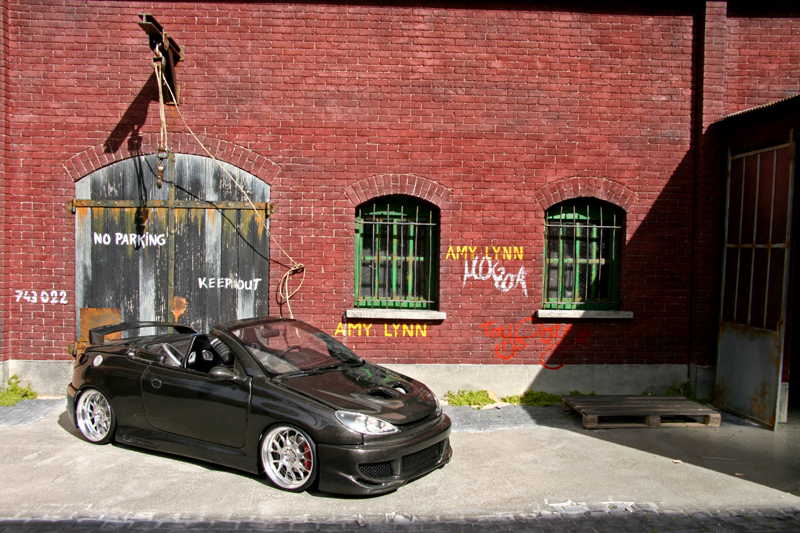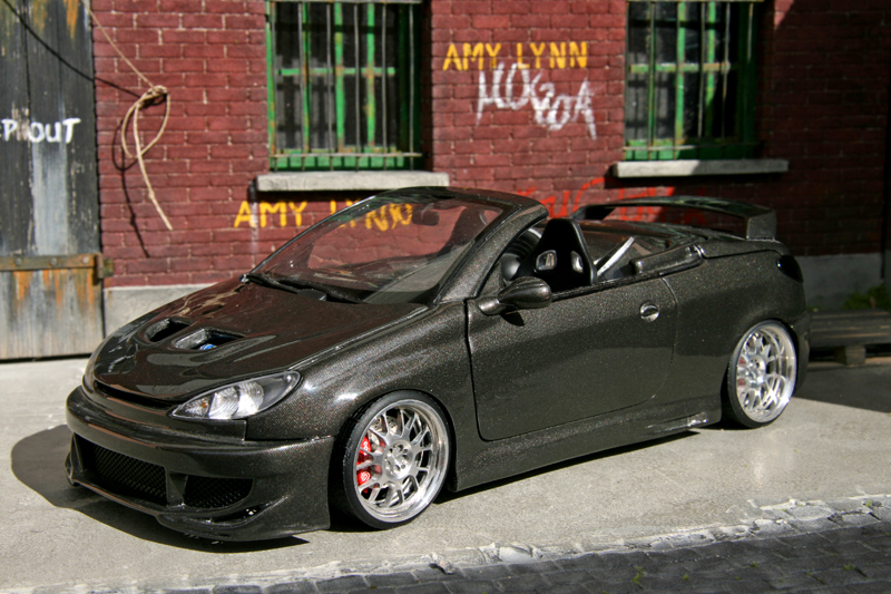 Base: Peugeot 206CC Gate 1/18Liste des modifications:- Kit MTK full carbone- Jantes alu- Baquets carbone- Pots alu- Caisson sono carbone- Filtra à air Green- NOS- Aileron Porsche- Feux teintés