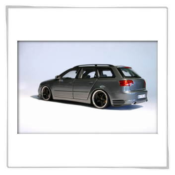 Base: Audi A4 Minichamps 1/18Modifications:- Porsche GT2 front spoiler- Porsche GT2 rear spoiler- Home made sideskirts- Shaved trunk- Carbon front lip- Carbon roof- Porsche wheels- Recaro seats