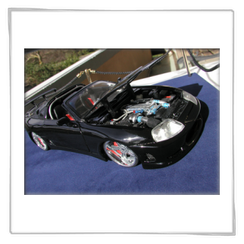 Base: Supra MKIV Ertl 1/18Modifications:- Shaved front spoiler- Aluminium exhaust- Wheels- Wing- Engine preparation- NOS- Recaro seats- Hood air intake